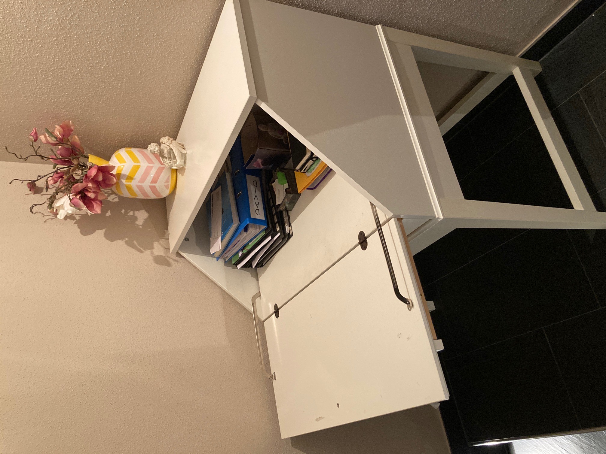 Stand die meiste Zeit in unserem Treppenaufgang. Hatten nur Schreibkram drin gelagert. Daher im sehr guten Zustand.