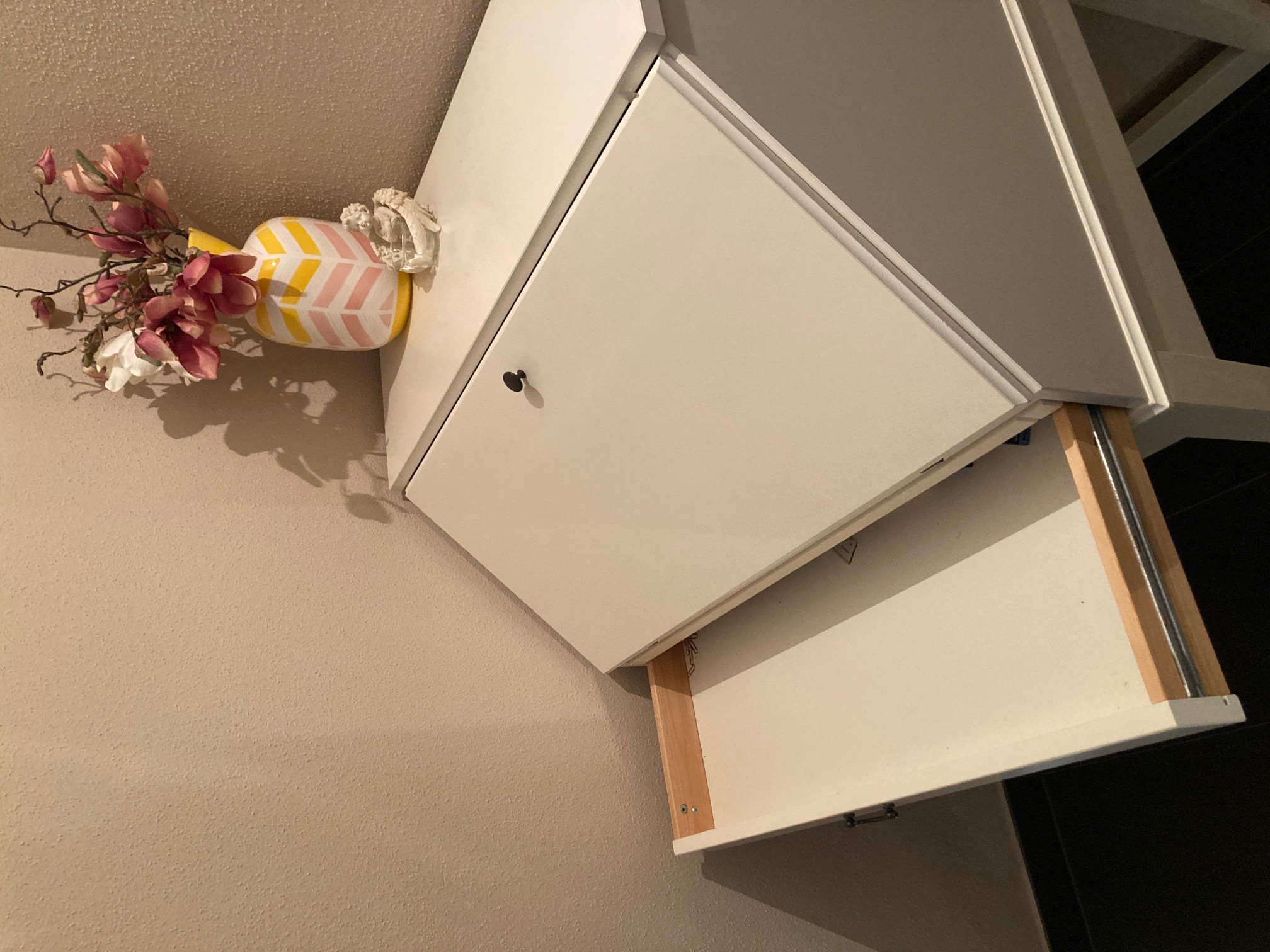 Stand die meiste Zeit in unserem Treppenaufgang. Hatten nur Schreibkram drin gelagert. Daher im sehr guten Zustand.